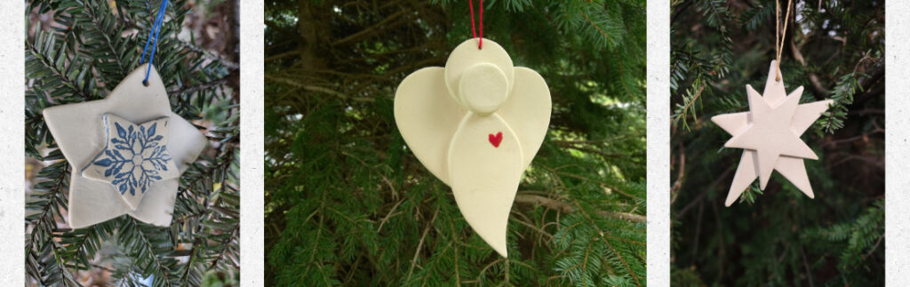 In this creative workshop, students will learn to roll clay slabs, cut out shapes, and put them together in interesting ways to make holiday ornaments. The focus will be on angels and stars, but other shapes will also be available. Students will be able to create 2-3 unglazed ornaments. The instructor will fire the finished ornaments in her studio and return them for pick up within 10 days.